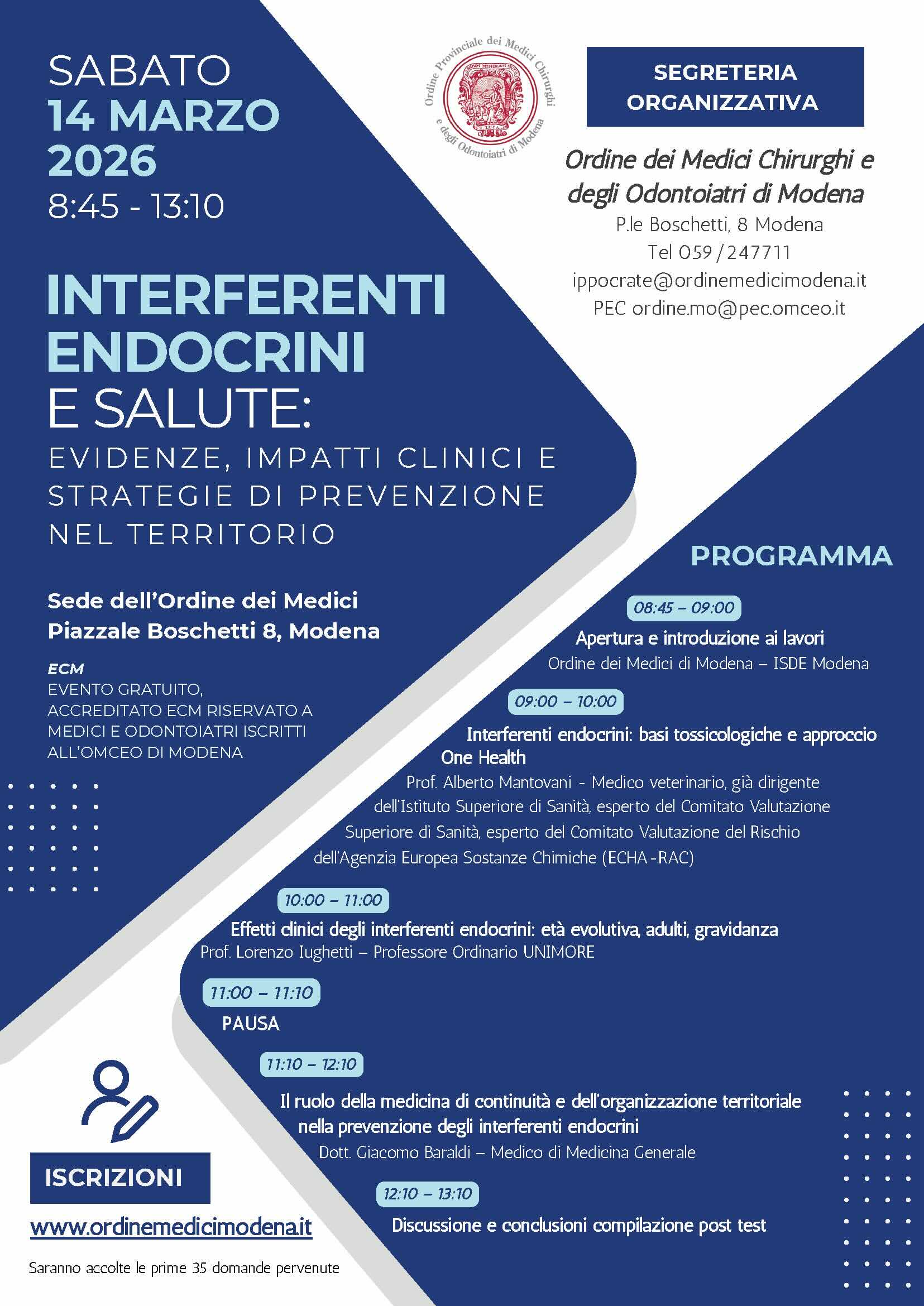 - 30 marzo 2019, dalle ore 09.00 alle 13.00, presso l’aula magna dell’Istituto F.Corni di Modena, in viale Leonardo da Vinci 300